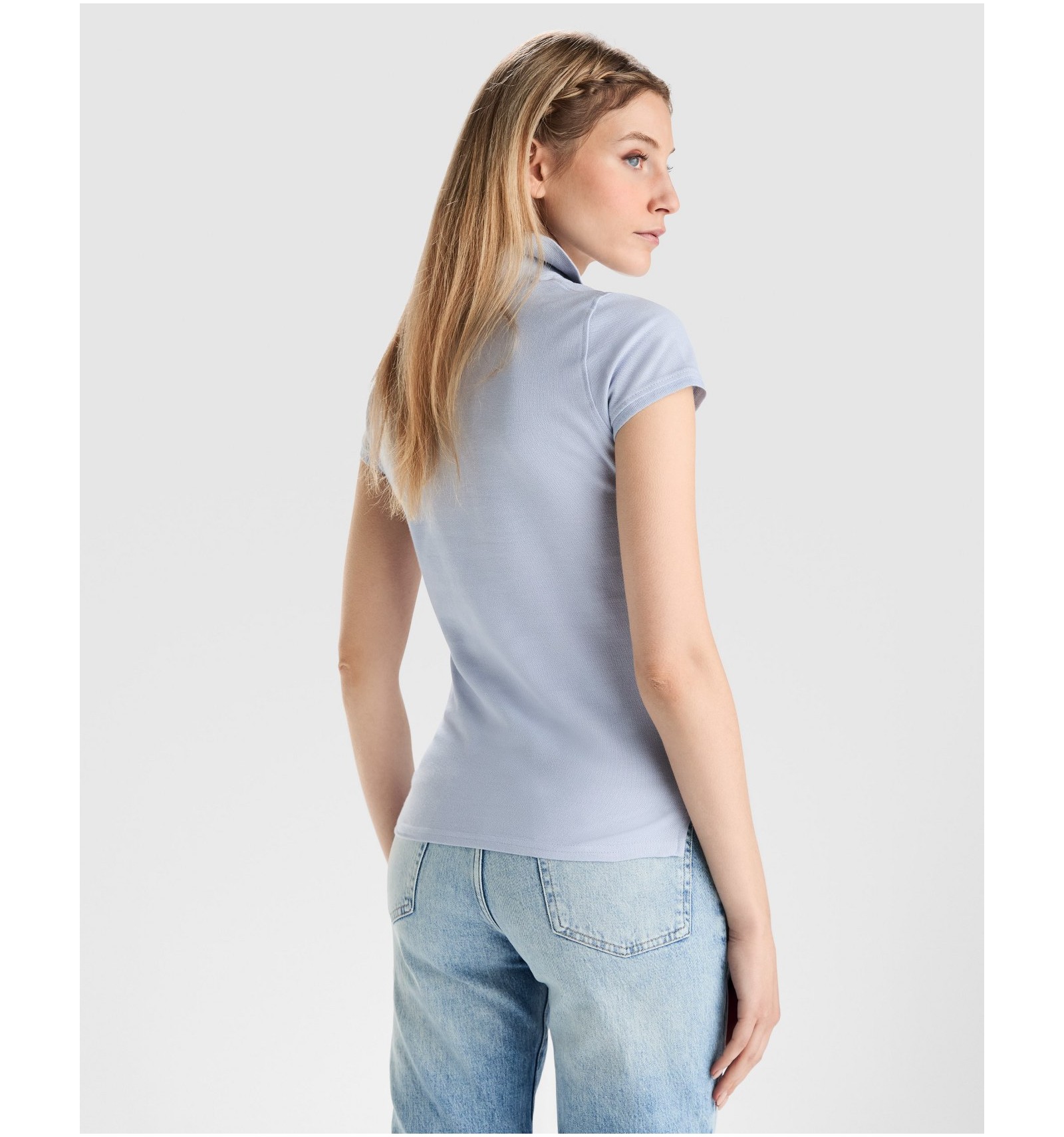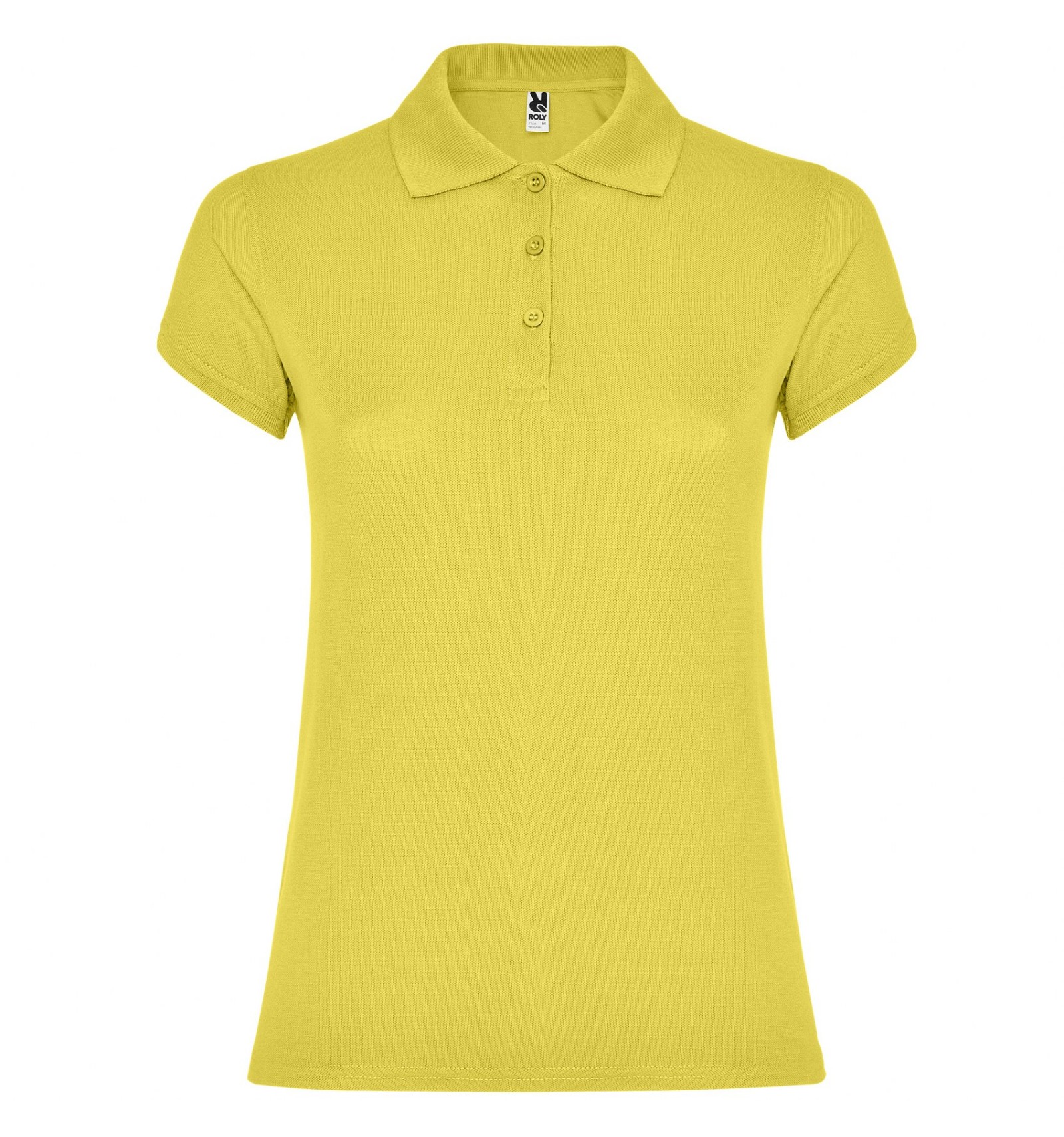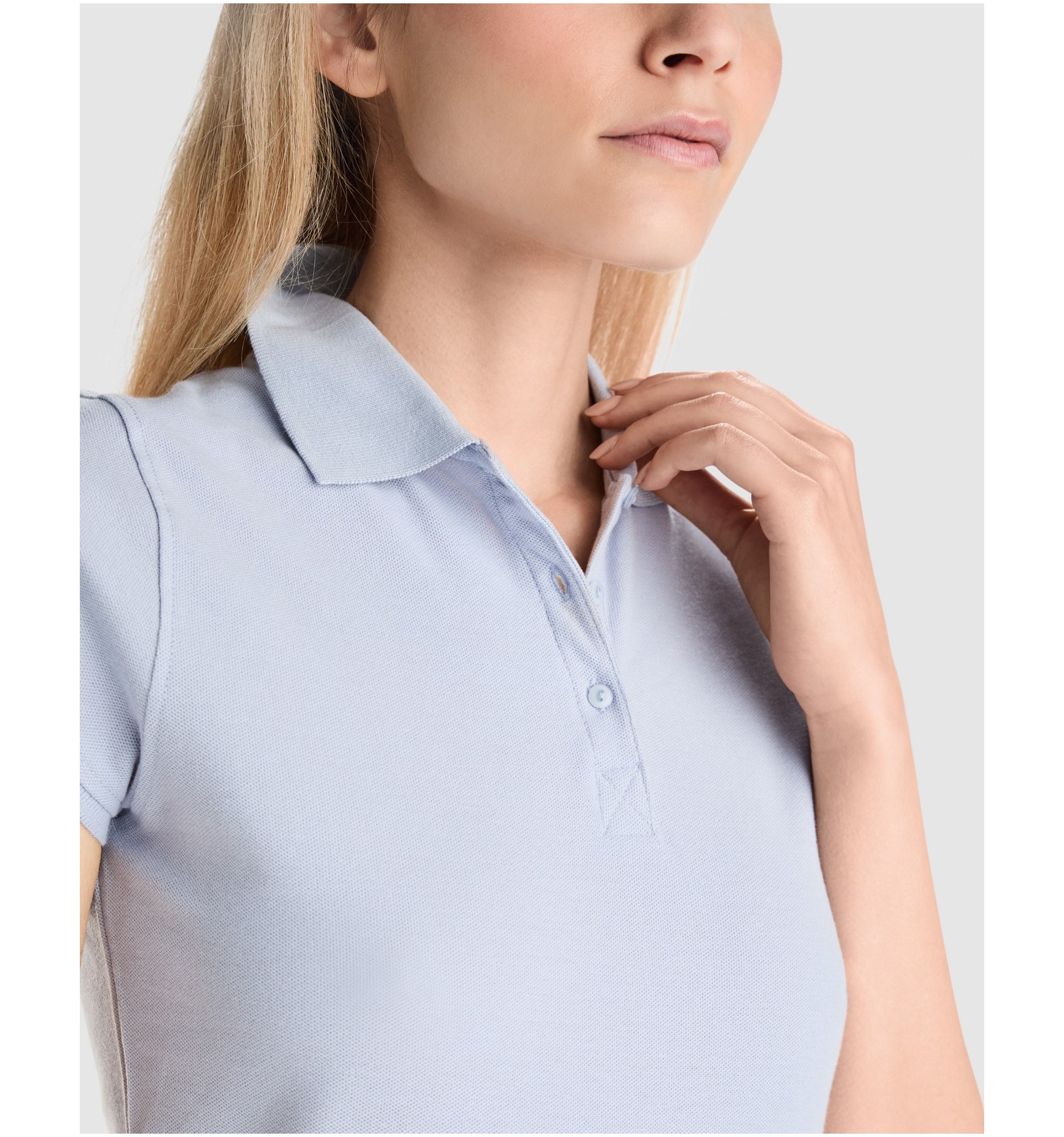 Tricou polo de damă cu mânecă scurtă. Bandă întărită pentru acoperirea cusăturii la guler. Guler și manșete canelate. Croială cambrată și cusături laterale. Fantă cu trei nasturi. Șlițuti laterale.