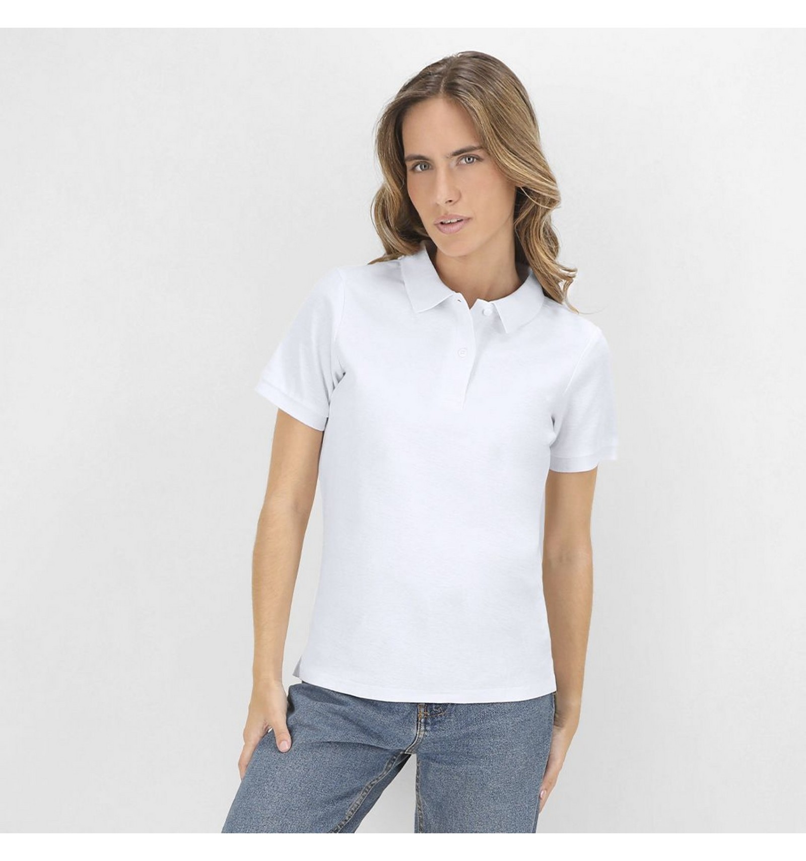 Tricou polo de damă cu mânecă scurtă, realizat din 100% bumbac pieptănat pique Ring Spun, 220 g/m².