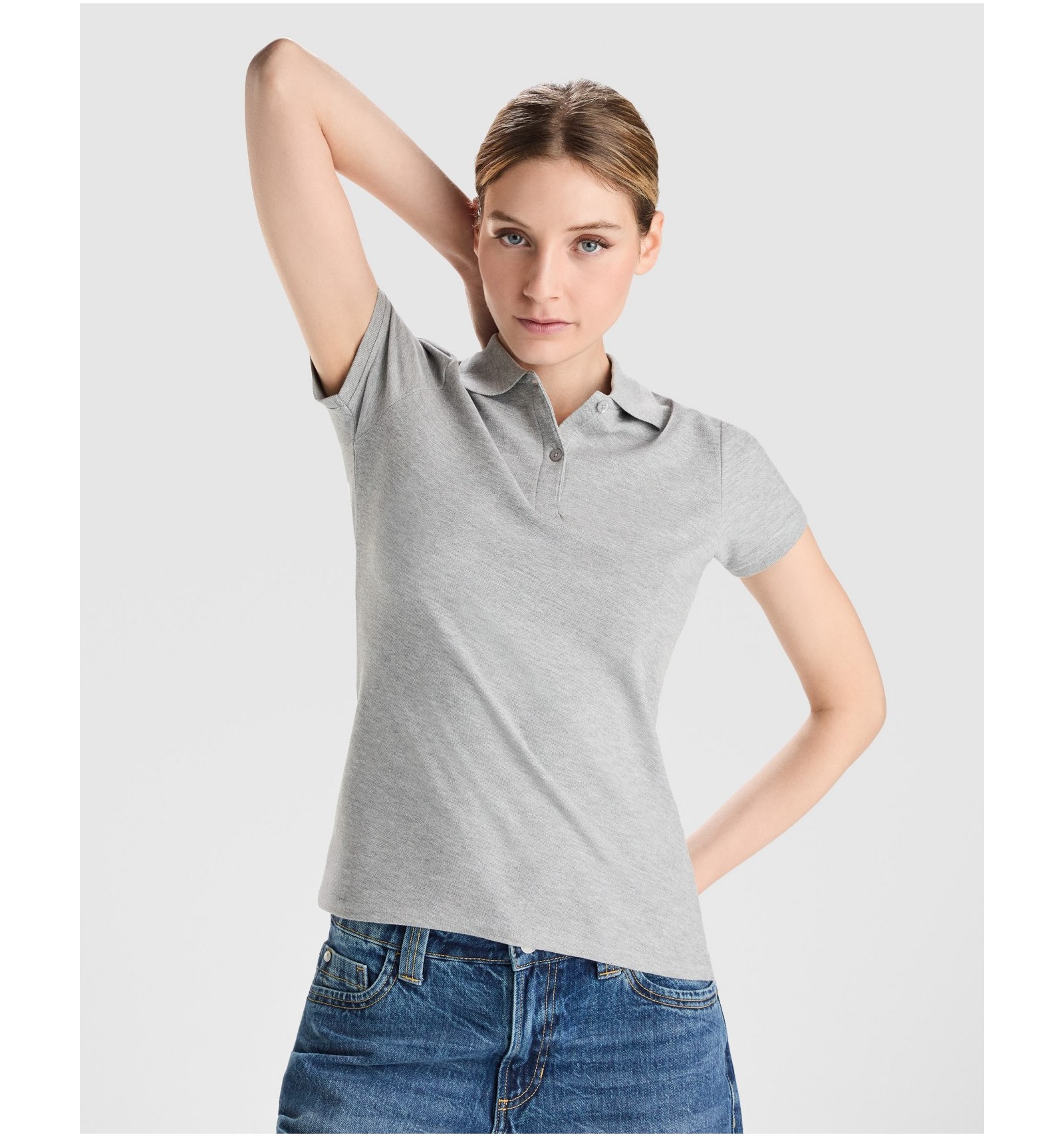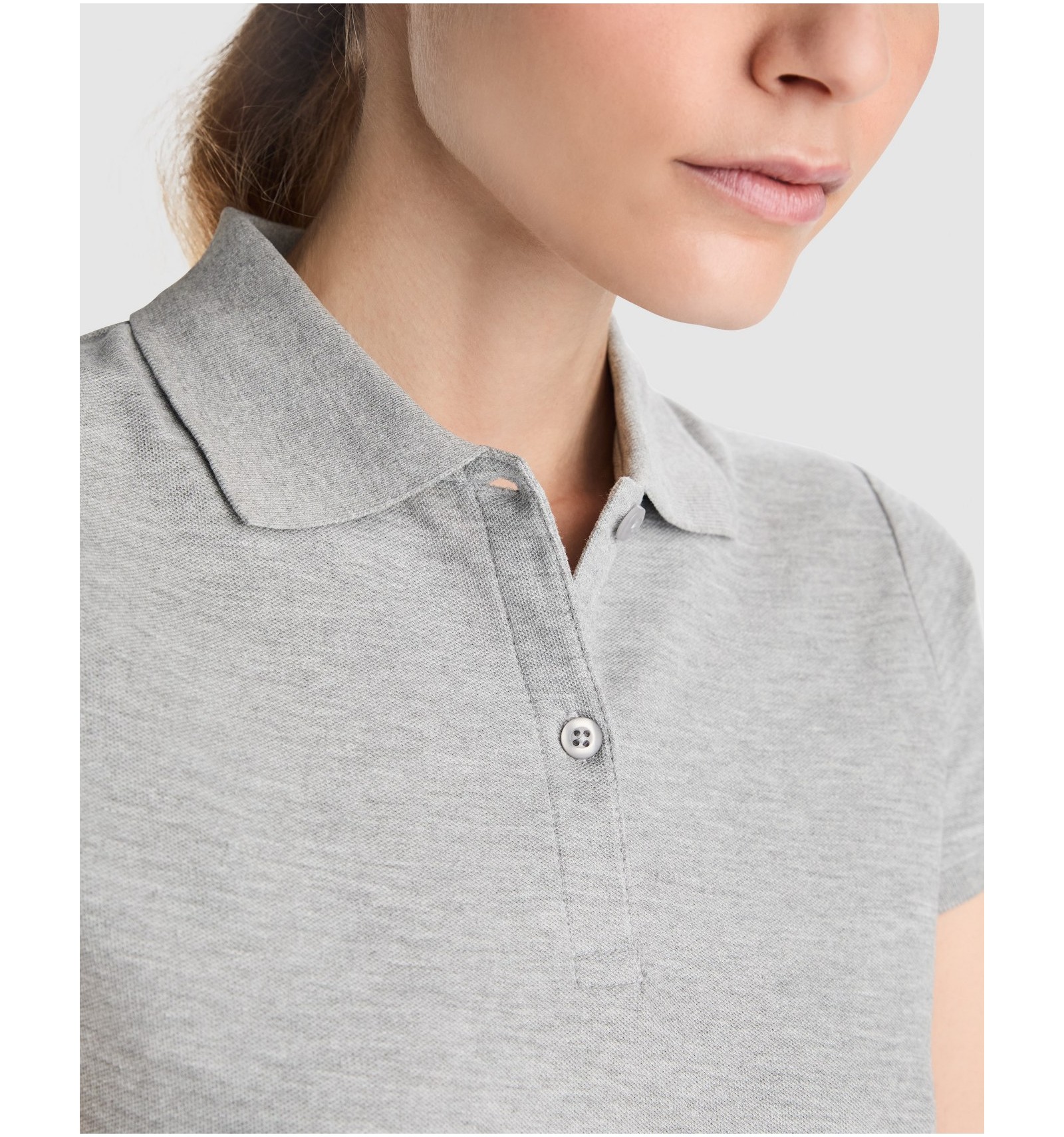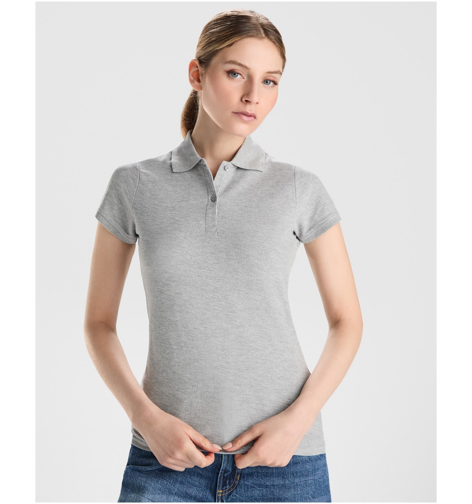 Tricou polo cambrată cu mânecă scurtă din bumbac ecologic certificat OCS pentru femei. 1x1 guler și manșete cu striații. Buzunar cu 2 nasturi. Cusături acoperite întărite la guler. Fante laterale pe tiv.